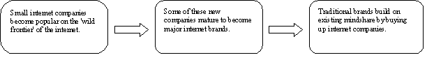 We see two acquisition trends in the UK. Firstly, we expect the final stage of development shown in the diagram above to begin taking place in the UK very shortly. There are a number of well established consumer and media brand names in the United Kingdom, including the likes of Sainsbury, Marks and Spencer, Barclays, Virgin, BT, Top Shop, Burtons, BBC etc. These established brands will increasingly buy internet companies in order to establish their positions in the internet space. BT's investment of $10 million for 50% of Excite UK represents the first major example of such a development. Secondly, we believe that smaller UK internet companies that provide a technological infrastructure or have built an established customer base (particularly supporting e-commerce), will increasingly be bought up by larger internet players. These will include providers of services such as classified advertising, internet auctions, comparison shopping, travel guides etc.